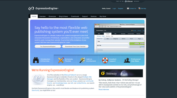 Expression Engine, zengin özellikleriyle ve istediğiniz gibi geliştirebileceğiniz esnek yapısı ile dikkat çeken bir içerik yönetim sistemi. Dünya genelinde binlerce kişi ve şirket tarafından kullanıldığı biliniyor. Features sayfasına bakarsanız, özelliklerinin saymakla bitmeyecek kadar çok olduğunu görebilirsiniz. Kategorilere ayrılmış template bölümünden ise, site ve kontrol panel temalarına ve arama motoru, profil gibi sayfalar için hazır kodlara ulaşabilirsiniz.
