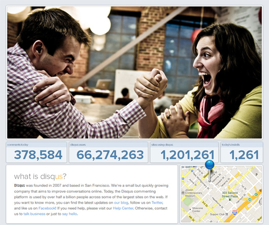 Disqus, özellikle bloglarda gerçek zamanlı tartışma ortamı sağlayan bir yorum platformu. İlk bakışta blog okuyucularına Facebook, Twitter gibi sosyal medya hesaplarıyla ya da Disqus hesabıyla giriş yaparak yazılara yorum yapma imkanı veren bir sistem gibi görünüyor. Ama kullandıkça çok daha fazlası olduğunu keşfedip çabuk ısınıyorsunuz. Disqus’ı kullanan site sayısı 1 milyonu, kullanıcı sayısı ise 66 milyonu çoktan açmış durumda. Ve bu kadar büyük bir işin arkasında küçücük bir ekip var.