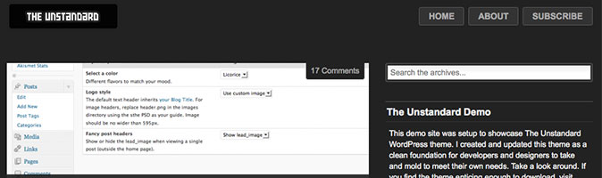 The Unstandard teması hem galeri hem de portfolyo siteleri için kullanabileceğiniz ücretsiz bir tema.
